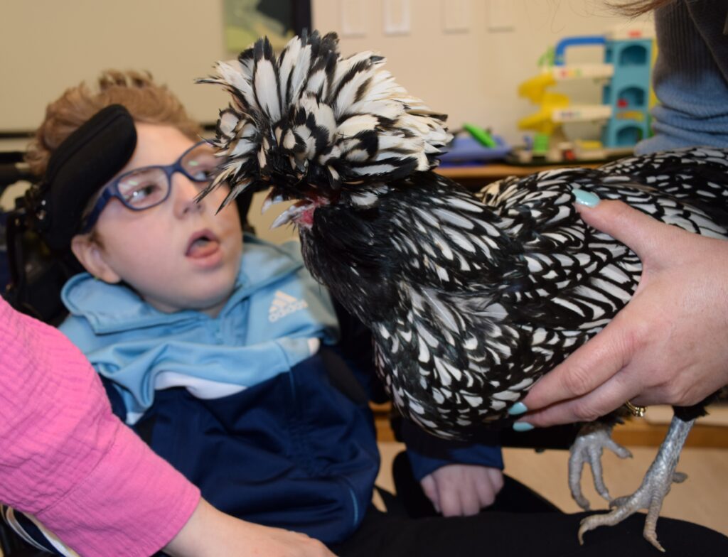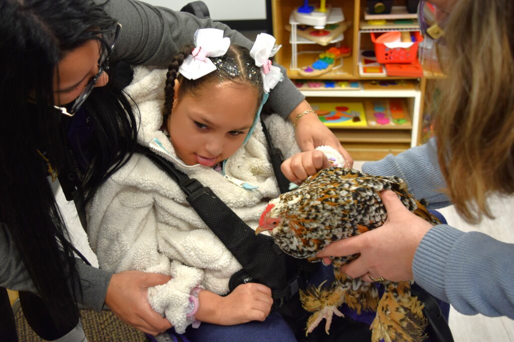 Children with visual impairments and their siblings explored a world of tactile and auditory experiences—from local animal pelts and forest scents to hands-on crafts, a beeping egg hunt, and even some time spent petting chickens. It was a day full of discovery, connection, and joy, made even better by perfect spring weather.